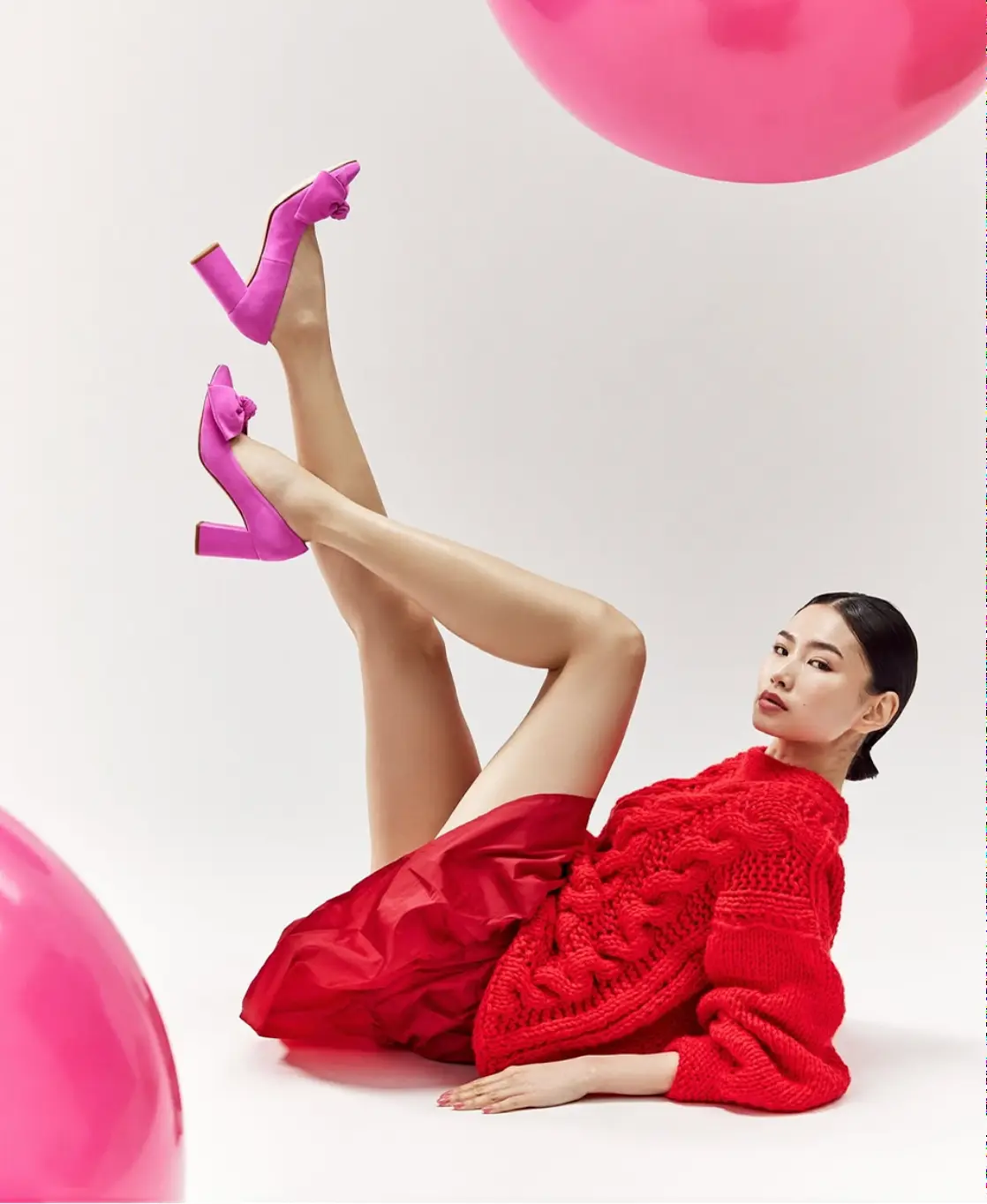 Kathryn Thomas wearing our Cotton candy Hand Knit premium wool blend hand knit jumper. Photograph by Evan Doherty for VIP Magazine